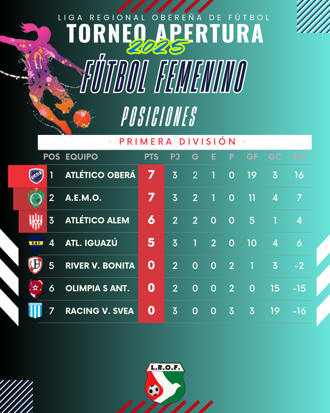 El pasado domingo se disputó la 3ª fecha del torneo Apertura 2025 de Primera División Femenino de la Liga Regional Obereña de Fútbol. También jugaron la Reserva y el sábado la Sub15.
