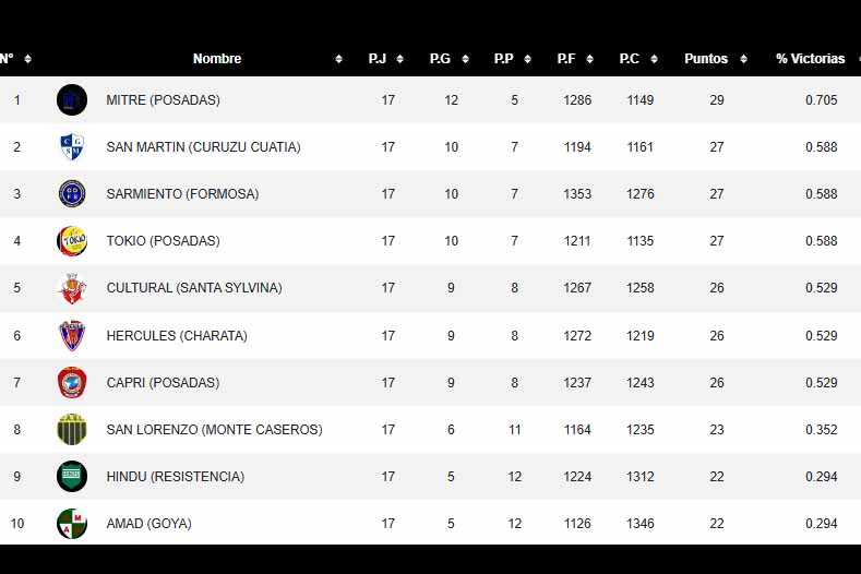 Mitre, que suma 29 puntos (12/5), cerrará la etapa clasificatoria ante Hindú Club en Resistencia. Recordemos que el equipo auriazul jugará en play off contra el octavo de la zona (que por ahora es San Lorenzo de Monte Caseros), al mejor de tres juegos (el primero de visita y la definición como local).