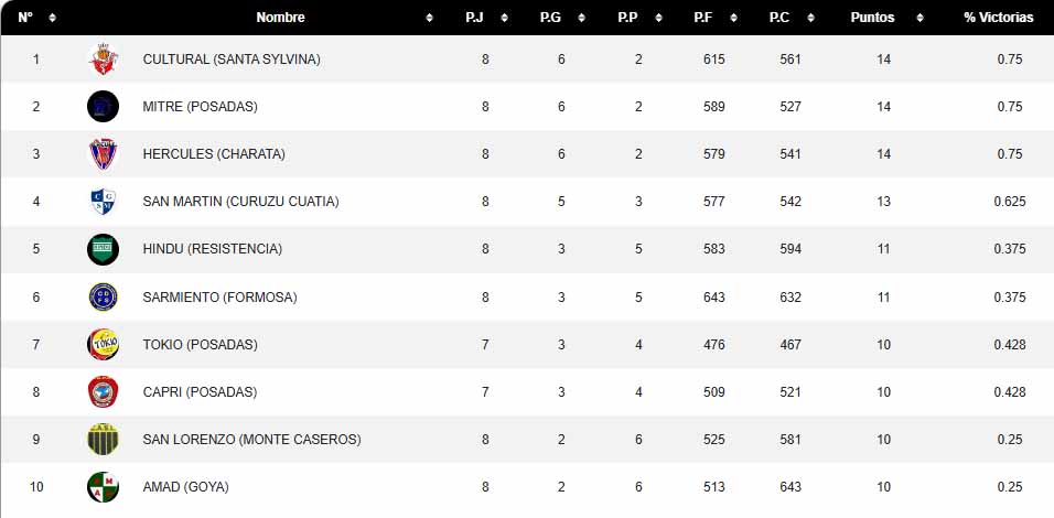 Mitre suma 14 puntos (6/2) y lidera junto a Cultural de Santa Sylvina y Hércules de Charata. El próximo partido del equipo auriazul será el lunes, cuando reciba a Hindú Club de Resistencia.